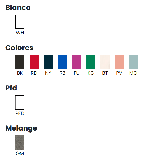 100% algodón preencogido. Gramaje: 170 gr. aprox.