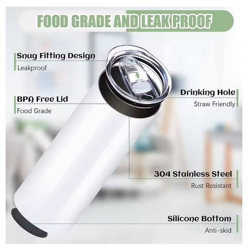 White 590ml Double-Wall Stainless Steel Sublimation Tumbler
